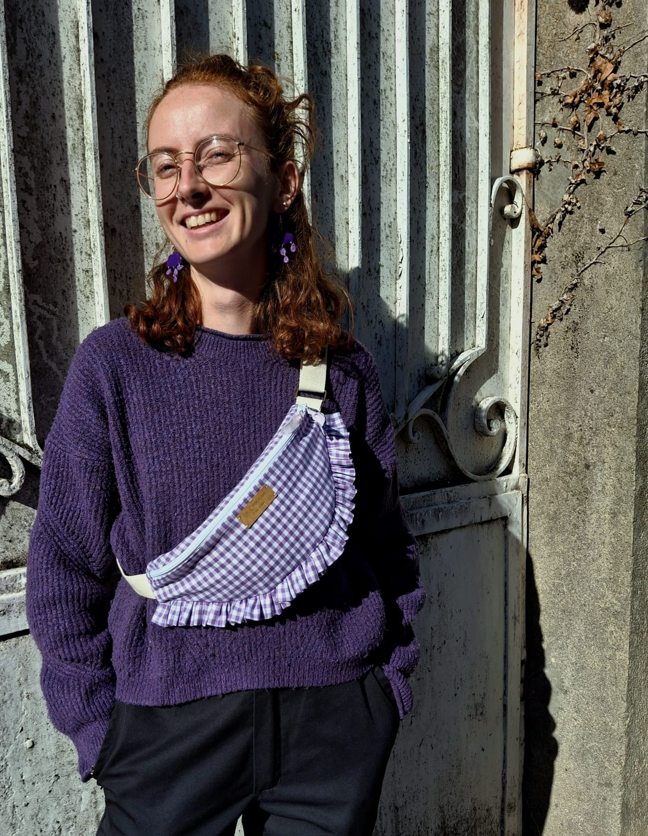 Douce et pétillante, cette mini banane en vichy violet se distingue par son petit volant délicat sur le dessous, qui lui apporte une touche originale.